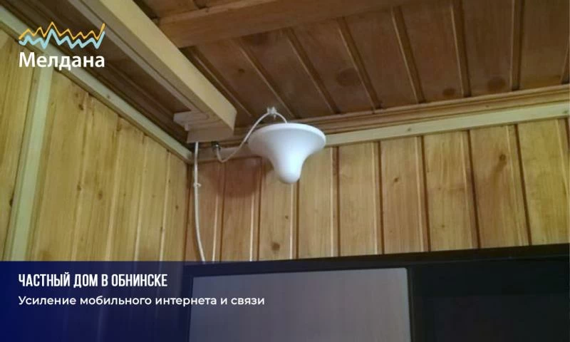 Усиление частного дома в Обнинске - в Садовом некоммерческом товариществе - смонтирована антенна с двухдиапазонным репитером получена высококачественная голосовая связь и доступ в интернет в доме и рядом с домом на участке - 1 внешняя атненна, репитер и внутренняя. позже добавлен 4GWifi роутер. для доступа в интернет с планшетов и ноутбука.